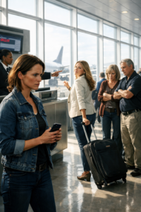 My family was ahead of us in line, clustered near the front like they belonged there. Dad had his puffer coat zipped to his chin. Mom was adjusting her scarf for the third time. My sister Tessa was filming something on her phone, probably another “travel day” montage for her story. My brother Ethan was making jokes, leaning close to our cousin Derek like they were teenagers instead of grown men pushing thirty.