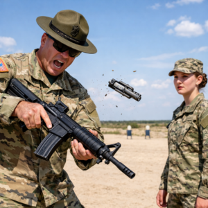 The sound was wrong—plastic and metal giving way with a sharp crack that felt like it cut the morning in half. The handguard split. The rail bent. The weapon was ruined in seconds, government property reduced to a lesson that wasn’t really about safety.