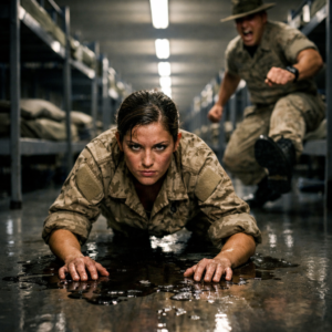 Casey knelt and started wiping the spill with a rag. She didn’t argue. She didn’t look around for witnesses. She did the job that kept the base fed and running while everyone else played operator and swaggered through hallways like the world was built for them.