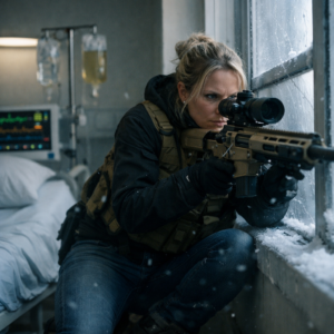 Ava stepped out of the supply room in a shadowed side corridor most of the staff didn’t use. Her scrubs were hidden under cold-weather layers. Her weapon stayed low, muzzle angled down, ready.