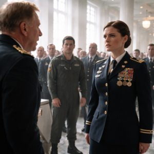 The room buzzed with cadets and instructors, uniforms sharp, faces young. General Abbott sat near the front, expression stoic but eyes bright. Landon sat beside him in a training suit now—still a pilot, but also an instructor, someone who’d chosen to rebuild his identity on skill instead of inherited narrative.