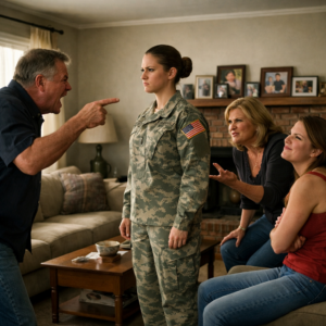 I wasn’t in any of them except one—far left, crooked in its frame, a photo from my commissioning ceremony. I was in uniform, saluting, and my father’s arm was around me. He looked stiff, like he wasn’t sure why he was there.