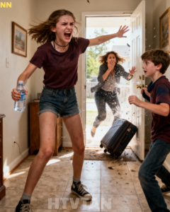 My mother’s suitcase rolled forward an inch before it stopped, like even the luggage wasn’t sure it belonged inside our house anymore. She stood with one hand on the handle, the other hanging at her side, fingers twitching as if she wanted to reach for us but couldn’t find the right way.