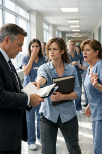 “A formal investigation,” he said. “We would review patient complaints, staff reports, and any patterns in the unit. I want to be honest—this could have serious consequences for her career. Administrative leave. Termination. Reporting to the state nursing board if misconduct is found.”