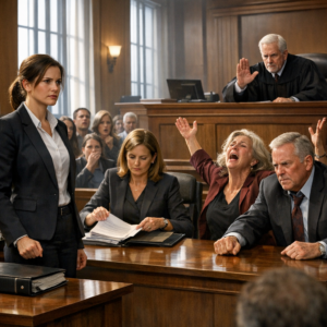 “Your Honor,” she says, rising halfway out of her chair, hands trembling theatrically. “We loved her. We gave her everything. And she threw it away—she threw us away. We don’t understand why she hates us.”