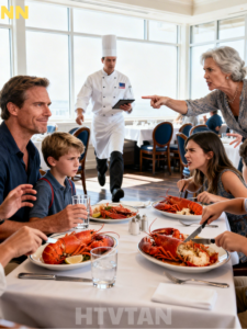 Patricia’s kids were already seated: Madison, ten, with her hair braided and ribbons that matched her dress; Trevor, eight, grinning like mischief; and little Khloe, five, wide-eyed and quiet. In front of them were lobster platters big enough to look unreal, shell cracked, meat piled high, butter dripping.