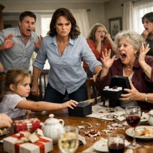 My mother-in-law gave her grandkids iPad, jewelry, and cash -except my daughter. “Not really family,” she said. My husband said nothing. Then, my 7-year-old slid a box across the table and said, “Grandma, dad told me to give this to you if you ever ignored me again.” She opened it – and screamed