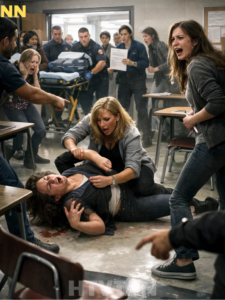 They lifted me onto the stretcher. The hallway outside was lined with students who looked like ghosts—wide-eyed, silent, frightened. Mr. Harlan walked alongside the stretcher until the double doors, then stopped, hands flexing as if he wanted to do more than he was allowed.