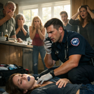 The EMT’s hand moved near my spilled water glass. He picked up something small from the floor near it—a fragment of something clear, maybe plastic or crystal, and slipped it into a small evidence bag. He handed it to the officer with a look that said everything without saying it.