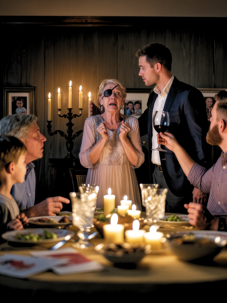 On my birthday, I walked into the candlelit dining room with one eye swollen shut, and every voice died on the spot. I could feel their stares burning into me when my son lifted his glass and said, almost proudly, “That’s my wife—she taught her some respect.” My hands shook, but not from fear anymore. Because what I was about to say next was about to destroy everything they thought they knew about this family…