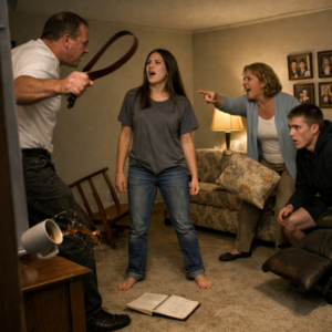 When my father finally stopped—when his arm tired or his righteousness ran out—I straightened slowly, breathing through pain, staring at the three of them as if seeing them for the first time.