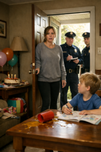 Ethan sat at the kitchen table in a shiny paper crown that kept slipping down over one eye, the elastic band tugging his ears forward. He looked like a tiny king who’d ruled a kingdom that forgot his name. He held his gift bag in both hands—careful, polite, patient—because that’s who he was. Even at seven, Ethan knew how to make space for other people’s feelings.