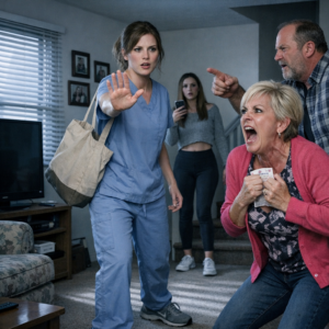 I walked into my parents’ apartment still wearing my cheap nursing scrubs and the kind of exhaustion that settled in your bones like wet sand. My hair was flattened from the cap I’d worn all day. My sneakers squeaked on the linoleum. The place smelled like fried oil and whatever floral air freshener my mom used to pretend our lives were nice.
