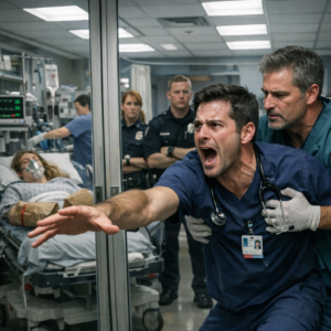 He didn’t answer. He didn’t even look at me. He just kept his gaze fixed on the trauma bays, where my colleagues moved in the familiar choreography of saving lives.