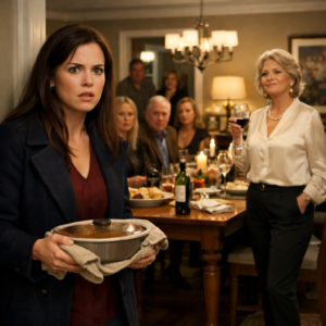 By the time I carried the casserole into the dining room, my mother-in-law had already told twelve people that my marriage was over, my husband was filing for divorce, and I would be moving out of my own house before spring. She had candles lit, wine poured, and sympathy arranged around the table like place settings. What she did not know was that I had spent the previous forty-eight hours preparing a surprise of my own, and the moment I gave it to her, the entire room changed sides without anyone having to say a word.