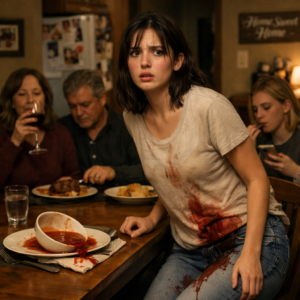 For one dumb, frozen heartbeat, I watched the red broth arc through the dining-room light in slow motion, watched it widen like a curtain coming down, watched it fall toward my lap like it had an appointment there. And when it landed, it wasn’t pain right away. It was shock—pure, animal shock—that made my body lock up instead of jump. Like my muscles didn’t believe what had just happened.