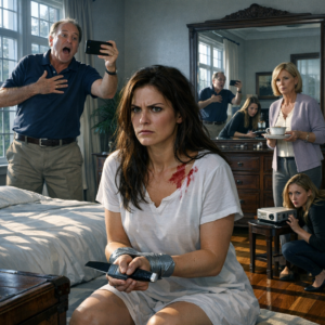 A phone camera hovered over me, close enough I could see my reflection in the lens. My father’s face floated behind it, his mouth twisted into a grin that didn’t match the fear he was acting out.