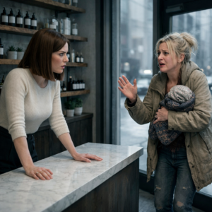 She didn’t step inside right away. She hovered by the door, staring at my shelves—at the amber bottles lined in perfect rows, at the reclaimed wood, at the clean calm I’d curated like a spell.