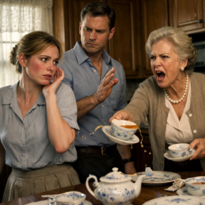 I glanced toward Eleanor, desperate. She was sitting with her tea, lipstick perfect, watching like it was theater.