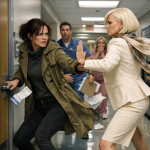 Karen Marshall. Fifty-four. Perfect highlights. Hermes scarf draped like she’d been styled for a magazine shoot titled Grief, But Make It Expensive. She stood near a doctor, speaking too crisply for a person whose mother was fading.
