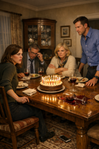 Not kinder. Not softer. Just… younger. Like the warm flicker was flattering her the way it flattered the icing on the cake and the polished oak table that had seen a thousand family dinners.