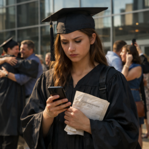 I stood there with the phone pressed to my ear, as if holding it long enough might bring him back. My graduation program sagged in my other hand. The paper wrinkled under my grip.