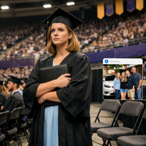 I stood under the bus shelter in my black cap and gown with my honors cords damp against my chest, watching water bead at the end of my mortarboard like the tassel was sweating. My hair was pinned up the way the graduation email recommended—“securely, to prevent slippage during procession”—and I could already feel it collapsing.
