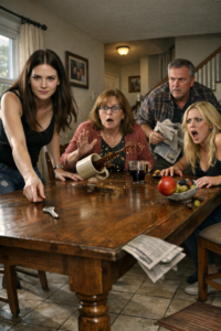 The table erupted again, a ripple of amusement that bounced off the framed family photos on the wall—photos where Jessica was always front and center, smiling wide, while I stood a half-step behind, the helpful blur.