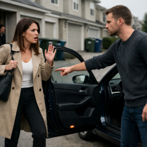 “What are you doing here?” My voice came out too loud, too sharp, the kind of tone you use when you’re trying not to shake. “I have to go to work.”