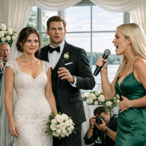 She smoothed the skirt of her maid of honor dress—sage green satin that caught the light like water—and smiled at the crowd the way people smile when they’re about to set off fireworks and want everyone looking up.