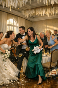 One of her bridesmaids—a brunette with glossy curls and a grin like she’d never once questioned her place in any room—smirked openly.