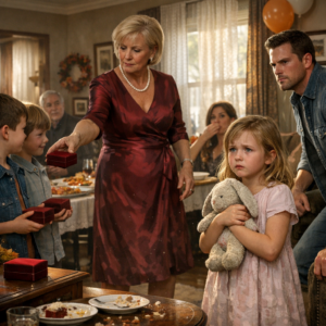 The silence that followed wasn’t the brittle kind anymore. It was the heavy silence of realization, of truth settling into bones. Parents exchanged uneasy glances, the unspoken truth now impossible to ignore. The party was broken, the glossy family portrait cracked straight through the middle.