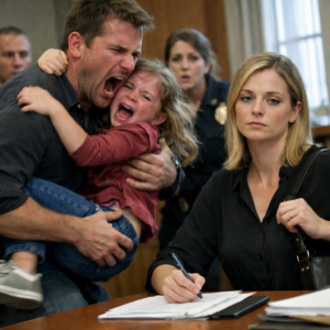 Across the aisle, Victor looked like he’d stepped out of an ad for “successful family man.” Navy suit. Clean shave. Concerned eyes practiced in front of a mirror. He held our daughter like a prize he’d won, his arm locked around her small body, his palm resting on her shoulder as if he was protecting her from me.
