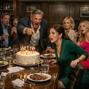 Forty-three people sat in a private room at Rossini’s, smiling under warm pendant lights, pretending we were gathered to celebrate me. The chocolate cake was already out, my name piped in bright frosting, candles waiting to be lit. My father stood at the head of the table like he owned the air in the room, hand resting on a wireless microphone, eyes scanning faces that had learned—over decades—how to nod at the right times.