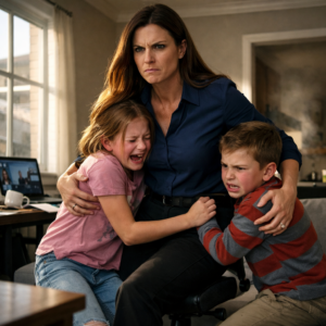 I crossed the room in three strides and pulled both of them against me. They smelled like playground dust and the citrus hand soap their school used. Emma’s shoulders shook. Caleb pressed his forehead into my shirt, and I felt his breath hitch.