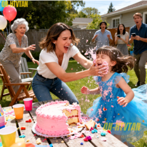 It happened so fast I didn’t even finish the sentence. Brittany shoved. Not a playful tap—an actual push that drove Mia’s face down into buttercream and sponge. Frosting smeared up Mia’s nose and into her hairline. Pink rosettes collapsed. A few people laughed—more out of shock than humor, I hope—and then I heard the little beep of someone’s phone autofocus.