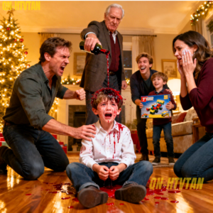 Around us, the room seemed to hold its breath. Red and gold ornaments on the tree reflected the harshness of the scene, the flicker of lights turning into silent witnesses. I could feel the weight of every adult’s gaze—some approving, some indifferent, some guilty—but none stepping in to shield the child from what had just happened.