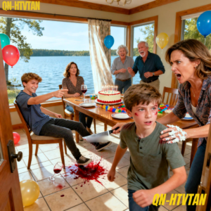 The guests stared, unsure whether to speak or pretend nothing had happened. The lake breeze filtered through the open windows, cooling the candles and fluttering the napkins, and yet the air inside felt thick, almost suffocating. I could feel something shift beneath the surface, something that had been buried for too long beginning to rise. This wasn’t just about a bruise. It wasn’t just about boys being rough. It was something deeper—something that had been festering in my family for years.
