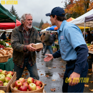 I was choosing apples—Martha had a late crop of Honeycrisps—when I felt it. Someone was staring at me. I looked up and saw a man across the aisle, maybe in his thirties, wearing a faded blue delivery uniform. His cap was pulled low, and his eyes darted from me to the crowd, like he was checking for something—or someone. When our eyes met, he hesitated, then walked straight toward me.