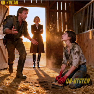 A skinny stable hand was on her knees, scrubbing dried mud off a stall wall with a cracked brush. Her hands were red, raw, and shaking. She looked up as if she’d been caught doing something wrong—and I recognized her eyes immediately.