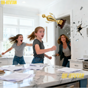 I remember standing there in shock, one hand pressed against the counter, my heart hammering, while the gold-painted trophy rolled across the tile. My mother rushed in, saw Chloe on the floor crying, saw me frozen, and went straight to comforting her. “Mia,” she said quietly, “you have to be careful. You know this upsets her.”