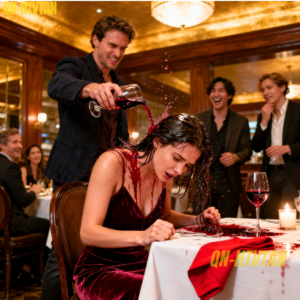 I tried to make a joke. I tried to tell myself this was a sick test. Maybe if I laughed, it would be over. Maybe it would be enough. But he didn’t laugh. He reached for his wine glass in a slow, deliberate way, and for a heartbeat I thought — absurdly — that he was about to clink his glass to end the cruelty. Instead he poured the whole glass of red wine over my head.