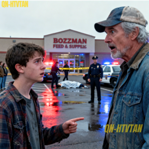 Two police cruisers were parked outside the store, their red and blue strobes cutting across the gray morning like lightning. A yellow ribbon of crime scene tape fluttered in the wind across the front entrance. A small crowd had gathered—ranchers, townsfolk, curious onlookers—all murmuring in uneasy clusters.