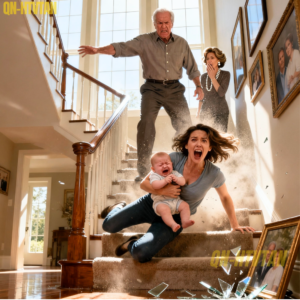 The carpet burned straight through my shirt as my back hit the steps, my arm twisting under the weight of my baby. Rosie screamed — a high, thin sound that didn’t sound human, didn’t sound real. For a moment, everything blurred. The air was full of dust and the sharp scent of my father’s aftershave, the faint hum of the chandelier above me, and the echo of his voice — “The inheritance is his! Get rid of that child!”