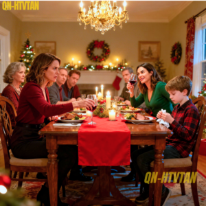 The candles flickered low on the table, the kind of glow that should’ve made everything look softer, warmer, more peaceful. Instead, it lit up every tense expression like a spotlight on a stage. The Christmas tree blinked in the corner, lights glinting off silver ornaments, its beauty wasted on a room that had forgotten what peace even felt like.