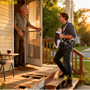My son stepped out. He looked older, tired. He had a baby carrier in his hand. He walked up the steps, looking at the porch I had fixed, looking at the peace I had built. He hesitated, perhaps expecting a lecture, or a guilt trip, or the “I told you so” that so many parents keep loaded in the chamber.