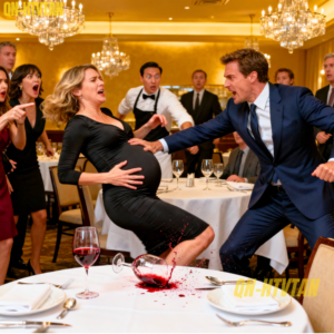 It wasn’t a dramatic movie throw. It was worse—quick, casual, entitled. Claire stumbled backward, her heel catching on the chair leg. Pain ripped through her lower belly like lightning. The room tilted. A glass shattered somewhere. Then the first warm gush hit between her thighs, and Claire knew instantly what it was.