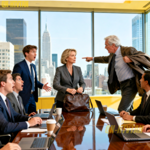 You know that eerie stillness right before a thunderstorm hits—the kind where even the air feels like it’s holding its breath? That’s what the conference room felt like that Tuesday morning in November. The kind of silence where something was about to break. Only this storm didn’t come with thunder or rain. It walked in wearing a navy suit that fit a little too tight across the shoulders, loafers without socks, and a smile that had never once known humility.