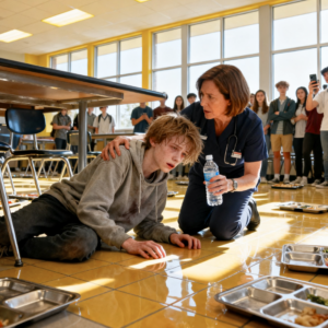 I remember the sound first—the distant, hollow ringing inside my head, like someone shaking a bell underwater. Then the sharp smell of disinfectant hit, followed by a blur of bright lights and the sterile white ceiling of the school cafeteria. My eyes struggled to focus. My body felt heavy, uncooperative. Somewhere to my right, a voice cut through the noise—gentle, worried, and familiar.