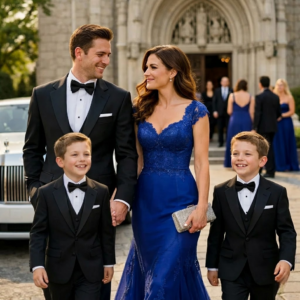 Lucas and Adrian emerged first, adjusting their jackets with the seriousness of young men determined to behave properly. Then I stepped onto the pavement, the blue dress moving softly in the evening breeze.